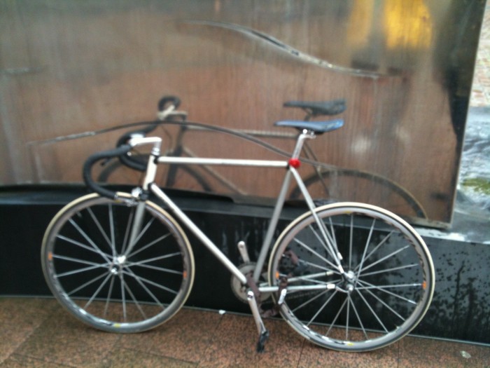 | Aarhus midtby. cykel blev stjålet en tidlig morgen. sikkert af en på vej hjem fra byen | |