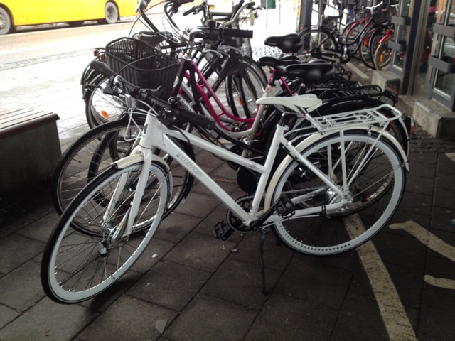 | Roskilde banegård, cykelstativerne ved nedgangen til tunnellen ved togene og elevatoren, tæt på nogle bænke. Stod tæt på fortorvet. | |