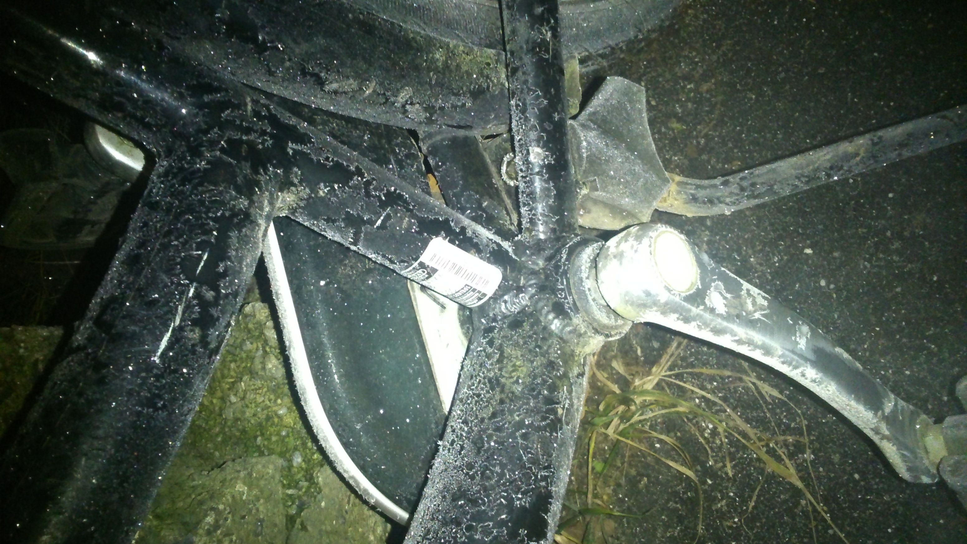 | Cyklen er stilt låst med hjullås op ad et hegn, men har ikke været brugt i et halvt år snart. | |