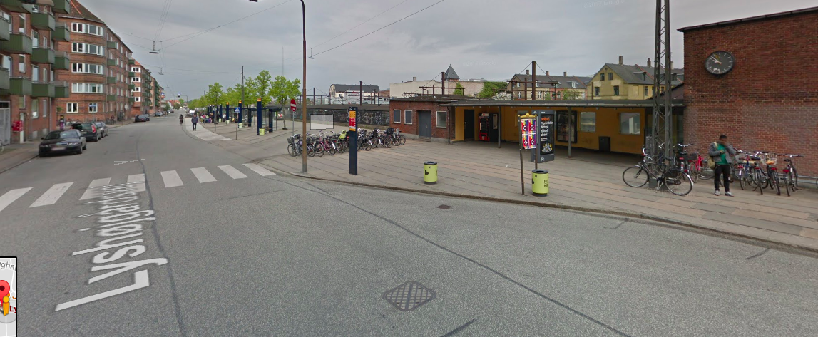| I foran af Valby St og ved siden af Busstoppet. Jeg havde parkeret den i cykelstativet tæt på indgangen til Valby St. | |