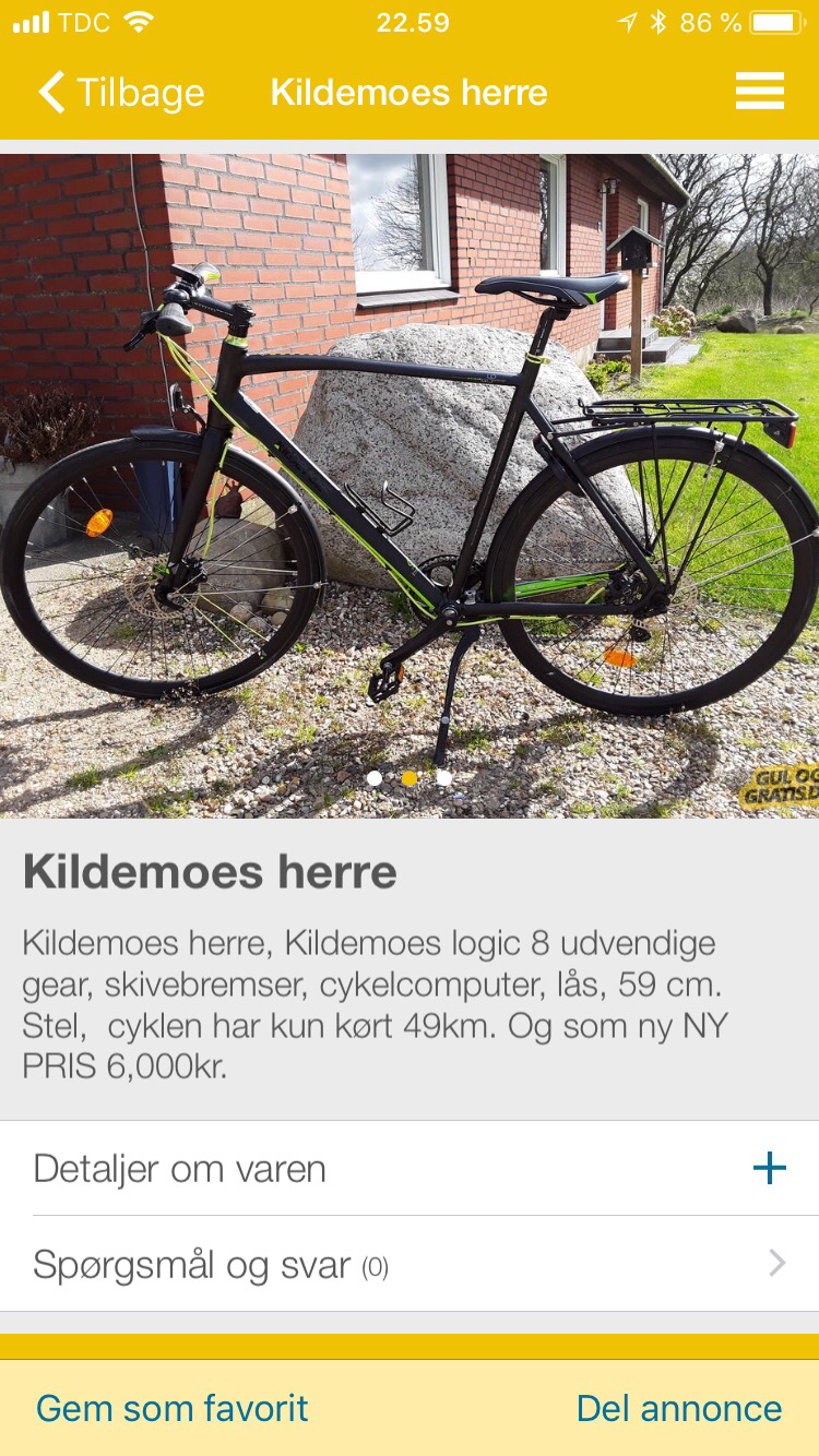 | Den er blevet stjålet fra Randers Station. Den holdt parkeret, låst, i et cykelstativ. | |