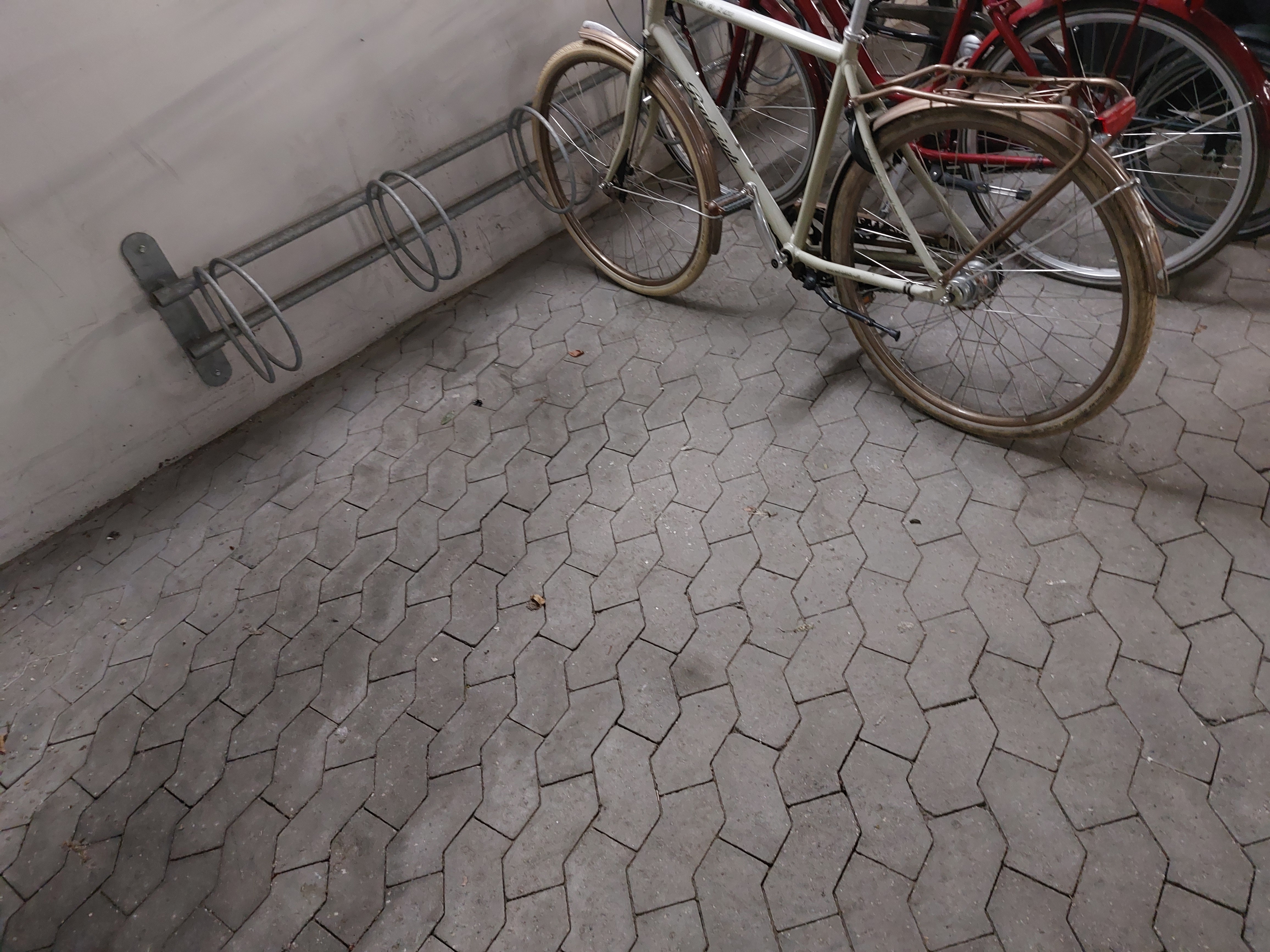 | Cyklen blev opbevaret i butikscenterets garage, der er åben fra 7 til 22, og låst i løbet af natten. Folk, der bor i lejlighederne over butikscenteret, kan få adgang til garagen med deres nøgle. | |